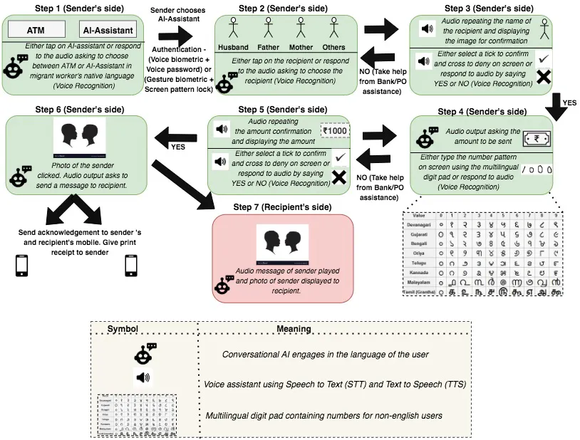 An AI-enabled interface for digital money transactions offers a host of benefits to not only migrant workers but other deprived communities as well. People without access to smartphones can enter AI-assisted ATMs and make their financial transactions with ease. Augmenting AI in public institutions has the potential to instill trust in digital transactions. The use of voice biometrics and voice passwords will ensure security, ultimately empowering marginalized communities.