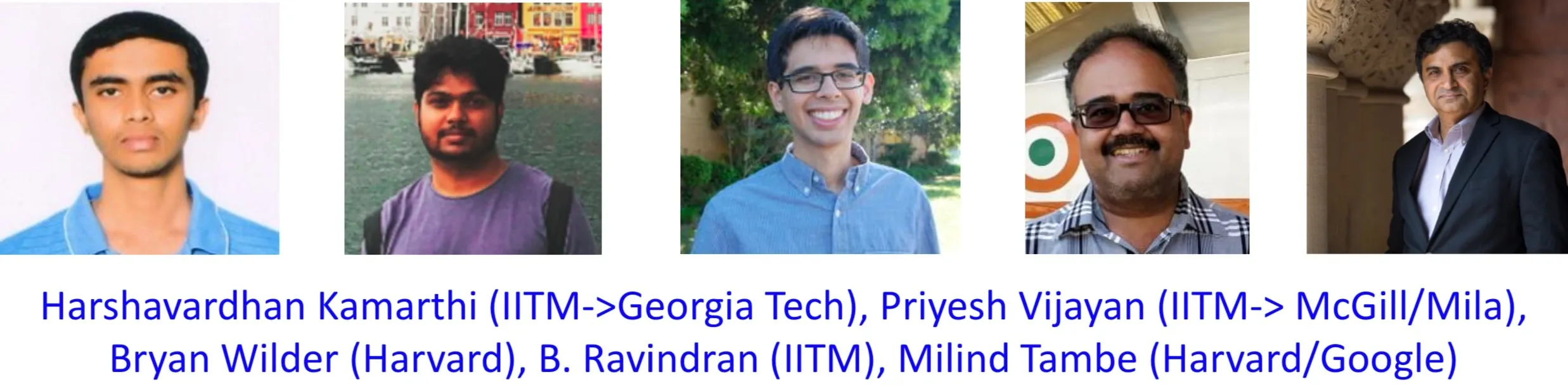 The research team of Prof. B. Ravindran included Harshavardhan Kamarthi and Priyesh Vijayan from IIT Madras; Bryan Wilder and Milind Tambe from Harvard University.