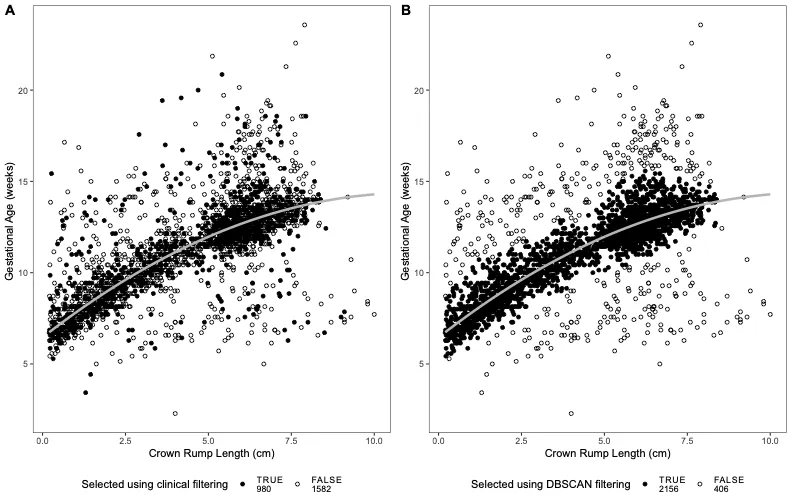 A strength of using the Garbhini-GA1 formula is that it caters to the lack of representativeness of an Indian population in published models used worldwide. Further, the data-driven approaches used in several parts of this study have led to a clean dataset to evaluate multiple combinations of several clinical and socio-demographic features. This is an important feature of this study as it reduces imprecision to the minimum that would not have been possible if alternate clinical filtering approaches were used. Such methods have helped in the standardization of fetal length as a primary predictor for the first trimester. The Garbhini-GA1 formula would be useful in serving as a gold standard in estimating gestational age in second and third trimesters where population-based differences have a greater potential in affecting growth. The choice of dating formula influences clinical and epidemiological research that attempts to study preterm birth in lower and middle-income countries. The results in this study will be validated further in other ethnic cohorts in India to increase its potential for broader use in a clinical setting.